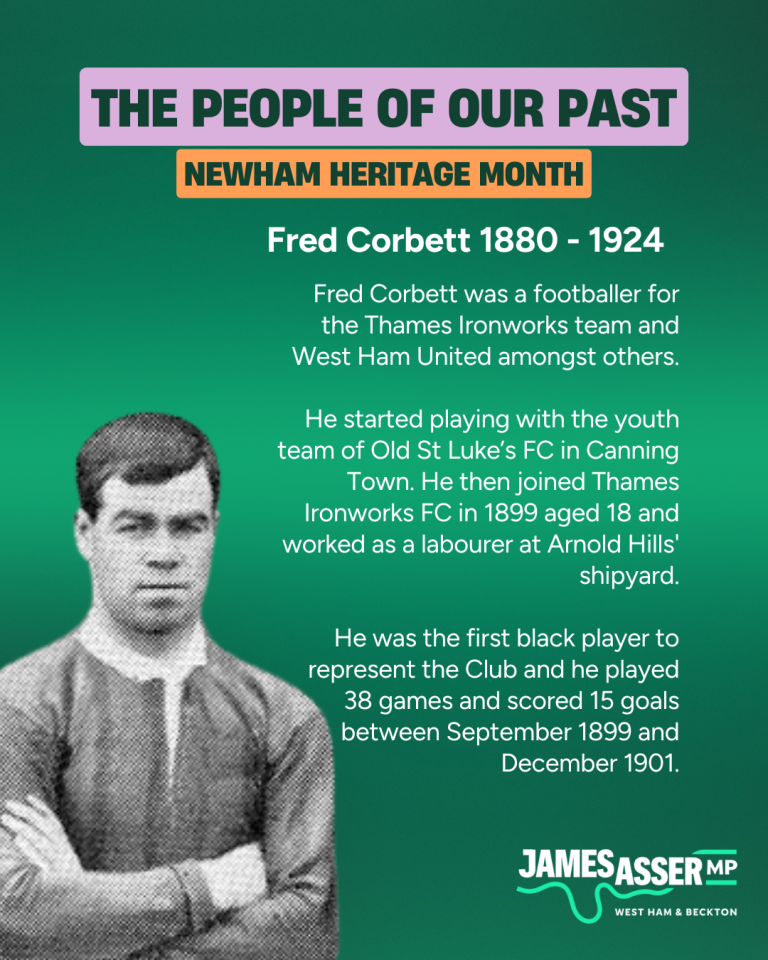 Fred Corbett was a footballer for the Thames Ironworks team and West Ham United amongst others.