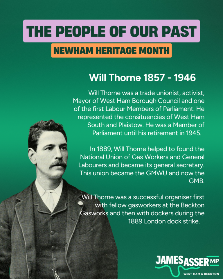 Will Thorne was a trade unionist, activist, Mayor of West Ham Borough Council and one of the first Labour Members of Parliament.